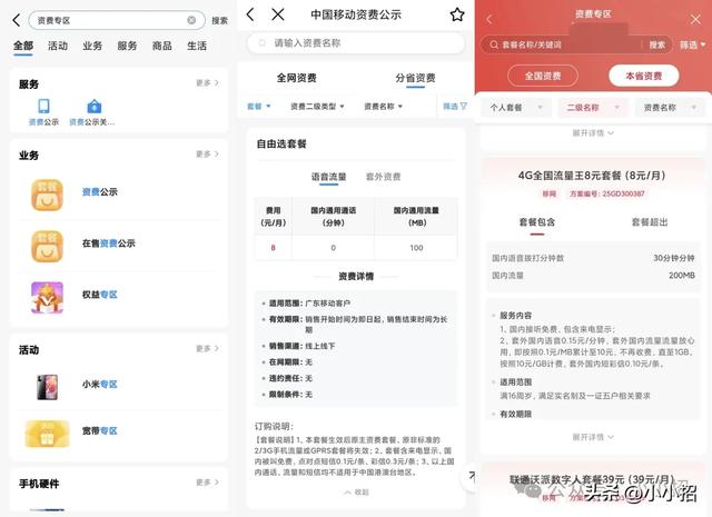 1.可在中国移动app或者中国联通app上搜索资费专区,切换到分省资费,可以看到有最低8元套餐,截图,也可看看其它套餐。